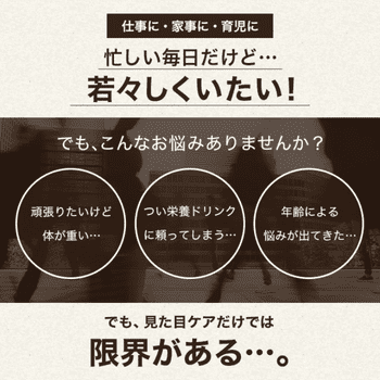 飲み始めて約10日ほど、説明通り毎日1粒飲んでいますが、まだ「体が元気になった…疲れにくくなった…等々」服用前と身体の変化は見られません。少しでも効果が出ればと飲んでいます。