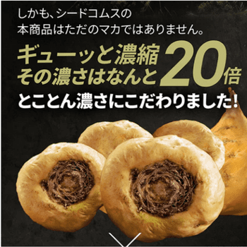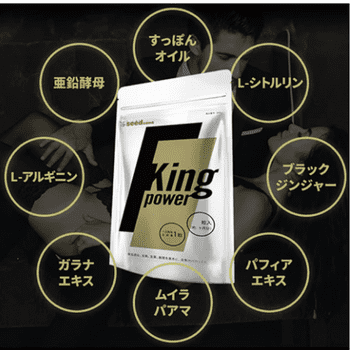 シードコムス「キングパワー」は、マカの濃さにこだわったサプリです。1粒あたり20倍濃縮マカエキスを20mg、100倍濃縮トンカットアリエキスを1mg配合している他、すっぽんオイルや亜鉛酵母など8種類の成分を配合。
