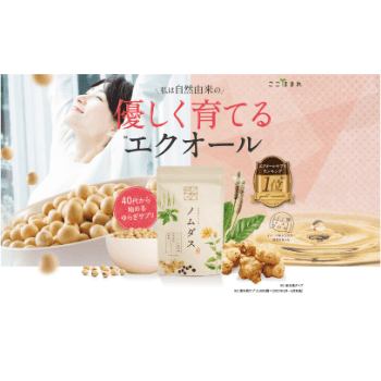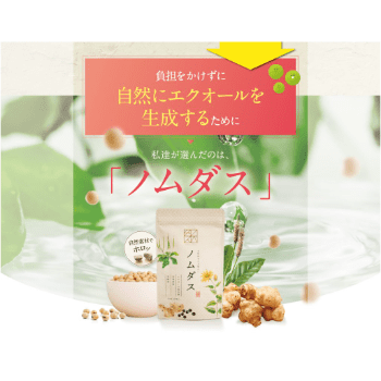「ノムダス」は、体内でエクオールを産生できるよう体内環境を整えてくれるサプリです。赤ちゃんから発見されたエクオール産生菌を配合しているため、エクオールを作れなかった人も実感できるようになるでしょう。吸収率が300%の黒大豆由来イソフラボンや、体内環境を整えるEC-12も配合されています。