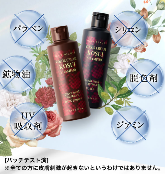 また、ヘアカラーと同時にケアも行えるので、パサつきが気になる方や髪にツヤが欲しい方もカラークリームKOSUIシャンプーを使用してみてはいかがでしょうか。