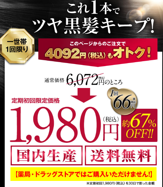 | 定期購入(税込) | 初回:1,980円 2回目以降:5,464円(1本あたり) ※定期初回価格、初回限定、1世帯1回限り |
