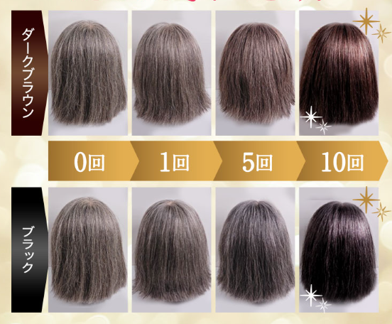 さらに、実際に白髪を染めることができるのか実証した結果では、回数を重ねるごとに徐々に染まっていく様子が分かりました。