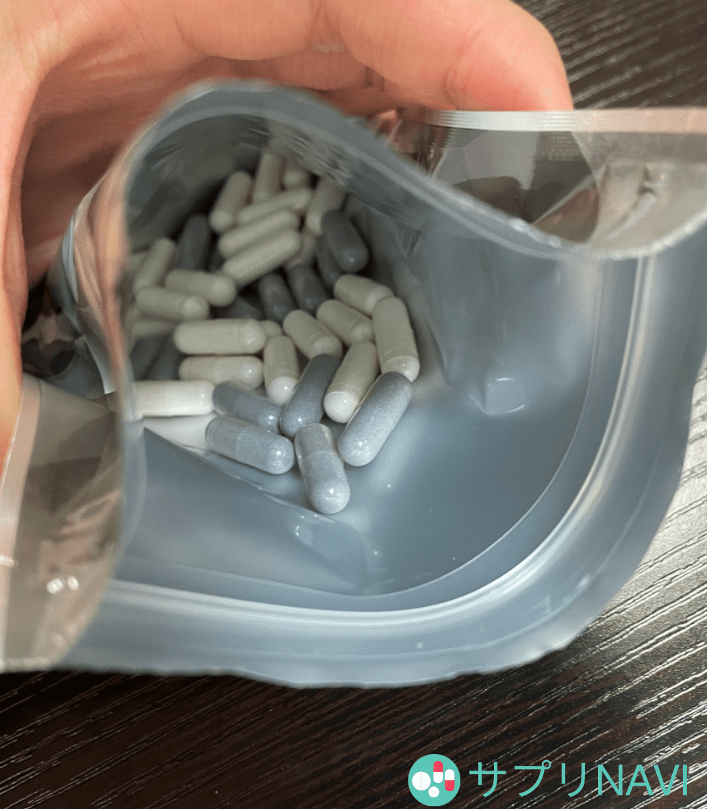 袋を開けると黒と白の2種類のカプセルが入っており、それぞれが異なる役割をこなすことでダイエットを効率的にサポートします。