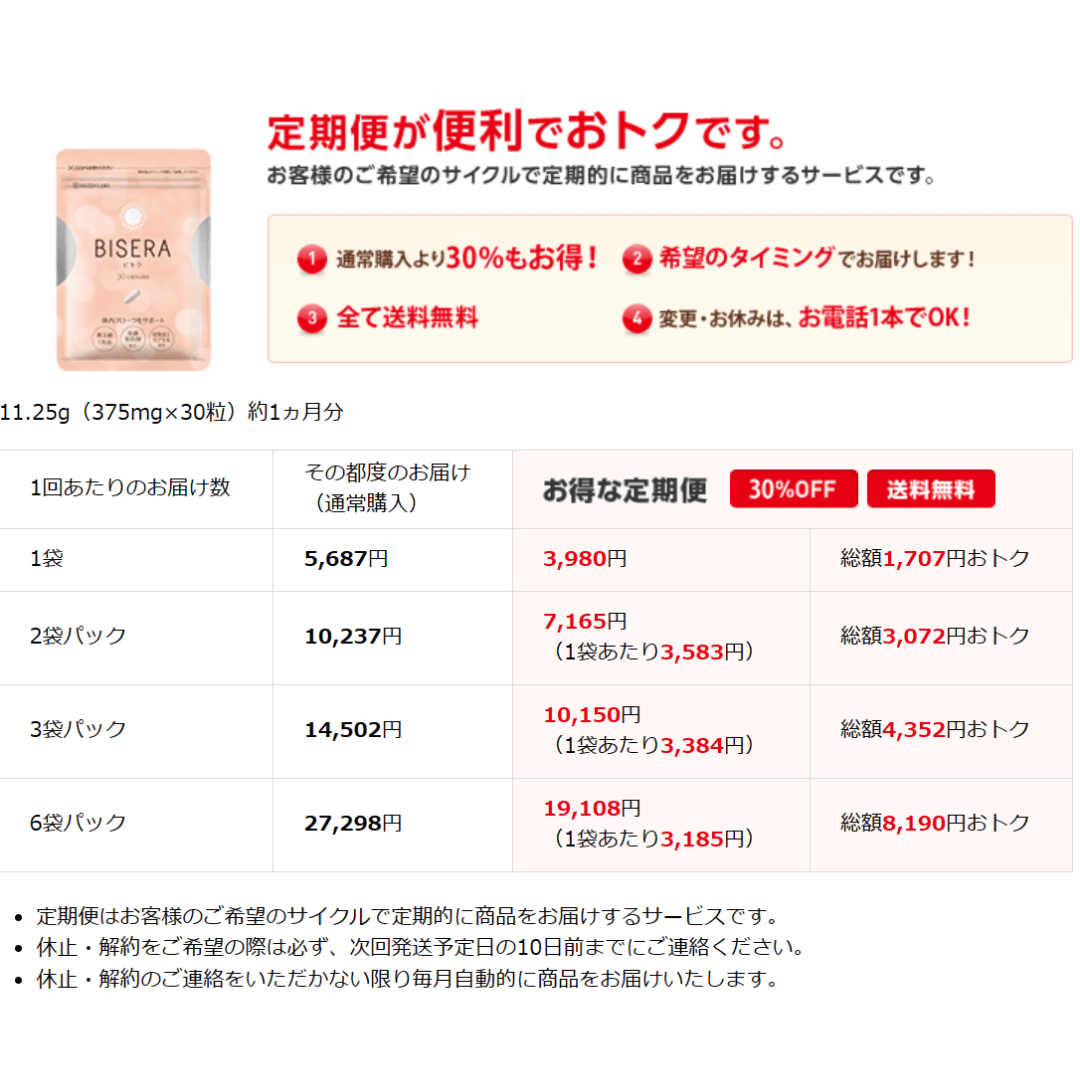 2回目以降:3,456円通常購入(税込) 5,961円 4,600円 4,362円 内容量 240粒(30日分) 120粒(30日分) 62粒(31日分) 1日あたりの価格 2回目以降:約179円