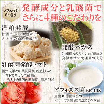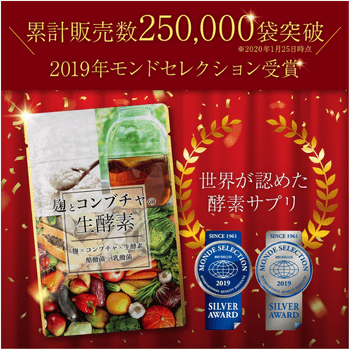 ゼラチン、穀物麹抽出濃縮物 | 植物発酵エキス、乳酸菌 | 有胞子性乳酸菌 | 和麹、酵母 | 穀物麹 | こうじ酵素、コンブチャ、生酵素 | 生酵素 | 麹菌・生酵素 | 植物発酵エキス末 | コンブチャ、炭、生酵素、 乳酸菌、酪酸菌 |