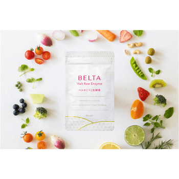 「ベルタこうじ生酵素」は、穀類をこうじ菌で発酵させた37種類のこうじ菌に、622種類の野菜・果物・海藻・ナッツ類をプラスした生酵素サプリです。1日の目安量2粒の中には乳酸菌が500億個も配合されているため、効率よく腸活にアプローチします。