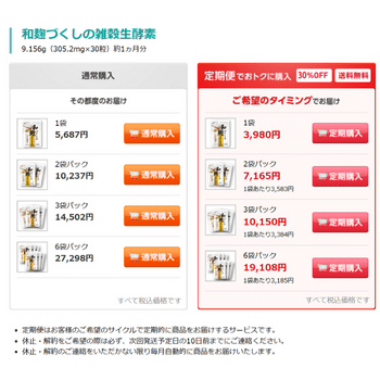 | 定期購入(税込) | 初回限定:500円 2回目以降:3,990円 |