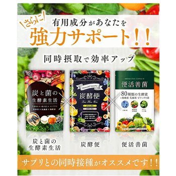 | 有効成分 | 酵素(プロテアーゼ、アミラーゼ、リパーゼ) 炭(薬用炭、竹炭、伊那赤松妙炭 やし殼活性炭、鎌倉珪竹炭末、紀州備長炭 野州麻炭粉末) |