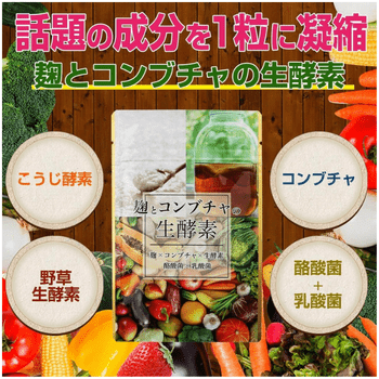 (約1ヶ月分)タイプ 粒 含まれている成分 麹菌・生酵素・コンブチャ・食物繊維・乳酸菌・マルチビタミン