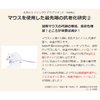 引用:『Long-term administration of nicotinamide mononucleotide mitigates age-associated physiological decline in mice』