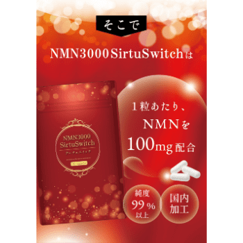 「NMN Sirtuin18000」には、最高純度99.9%のNMNが30日分で3,000mg配合されています。