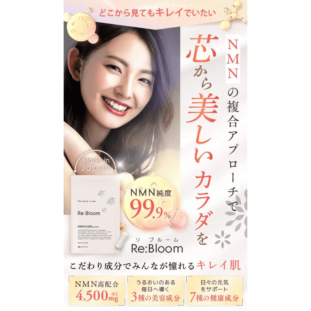 「Re:Bloom」は純度99.9%で、1粒にNMN150mg配合されており、国内GMP認定工場で製造されてます。