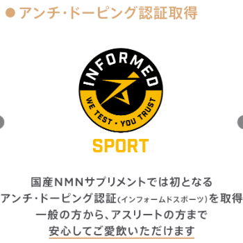 同社のNMNは純度99.8%を確保した品質が認められ、アメリカ合衆国国防総省の資金提供によるワシントン大学医学部での臨床研究に採用されています。