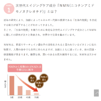 NMNってどこの製品もまだまだ高いから「長く続けなきゃと思っていても…うーん」って気分になってたんですが、この価格なら続けてもいいかなって思えるし、すぐ効く美容成分と長い目で見る必要があるNMNが合体しているから続ける前に挫折するってこともなさそうだし。
