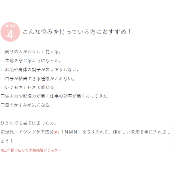 年齢を重ねても美しく健康的に過ごせるように、あなたに合ったNMNサプリを見つけてください。