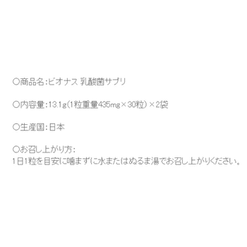 - 澱粉(国内製造)、乳酸菌、ビフィズス菌(乳成分を含む)/HPMC、ステアリン酸Ca、酸化ケイ素