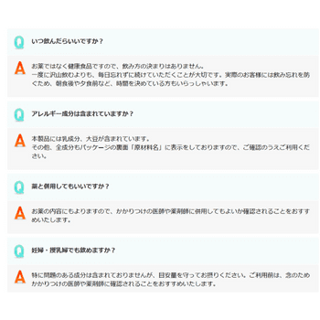 久光製薬が厳重な管理・検査体制で生産し、各製品ロットごとに試験をおこなって品質管理を徹底しているため、安心して飲み続けられるでしょう。