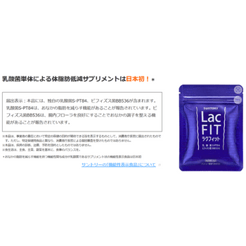 「ラクフィット」に含まれるS-PT84は「しば漬け」などに含まれる乳酸菌で、1日に100億個摂取するとお腹の脂肪を減らす効果があることが臨床試験で確認されています。(参考:サントリーウェルネスOnline)