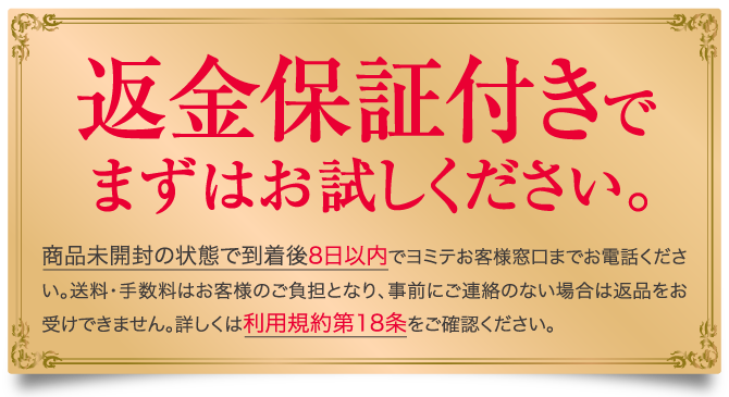 ちなみに、商品未開封の状態で到着後8日以内であれば、返金保証も付いてきます。※詳しくは利用規約をご確認ください。