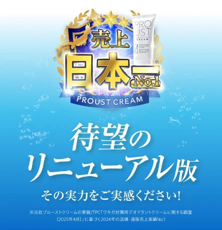 (※2 当社プルーストクリームの実績/TPC「ワキガ対策用デオドラントクリームに関する調査(2025年4月)」に基づく2024年の店頭・通販売上実績No.1)